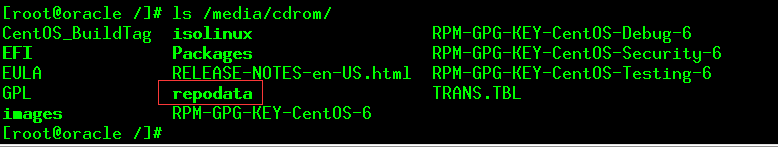 查看光盘目录,已存在repodata目录,则意为此目录已是一个有效的yum数据库。则已满足了上述的其中一个条件,接下来查看是否存在有效的yum 配置文件,其指向此yum仓库。