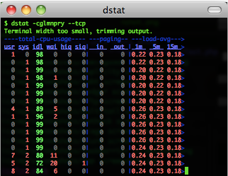 dstat显示了cpu使用情况,磁盘io情况,网络发包情况和换页情况,输出是彩色的,可读性较强,相对于vmstat和iostat的输入更加详细且较为直观。在使用时,直接输入命令即可,当然也可以使用特定参数。