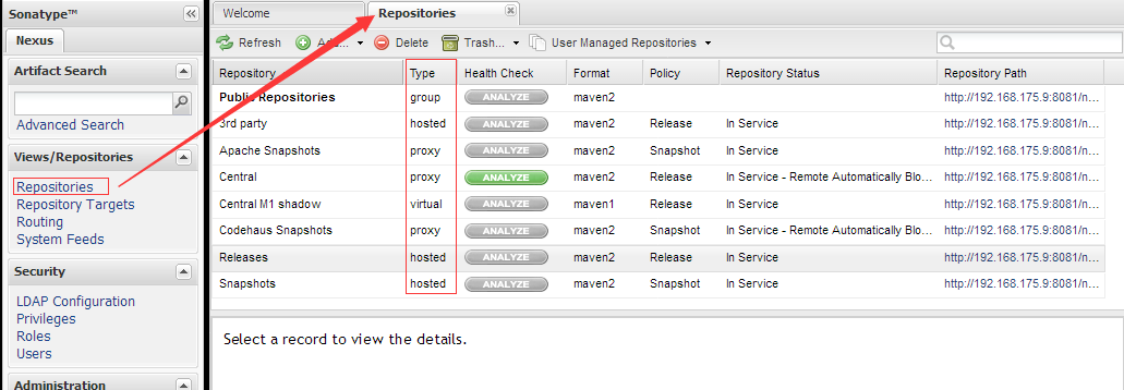 一般用到的仓库种类是 hosted、proxy。