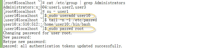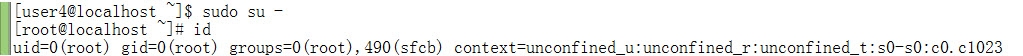 之后,用户user4只需执行一次sudo su - 即可切换成root身份了