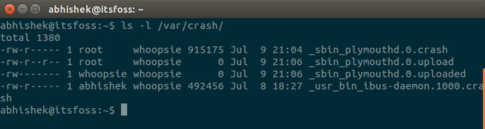 这些错误报告被存放在Ubuntu中目录/var/crash中。如果你翻看这个目录的话,应该可以看到有一些以crash结尾的文件。