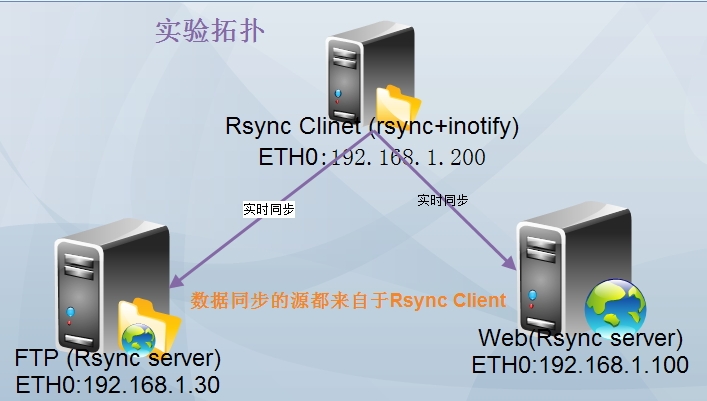 rsync inotify 需要逆向思考,当只做rsync不实时同步时,我们一般是从rsync服务端向rsync客户端同步数据。当需要添加inotify实现实时同步数据时,我们就需要从rsync客户端向各rsync服务端同步数据,这样rsync客户端就变成了master,而rsync服务端就变成了slave。