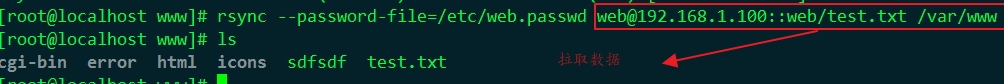 2)第2条是从rsync服务端(192.168.1.100)下载文件到rsync客户端(192.168.1.200)