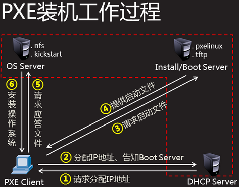当批量给主机安装操作系统时,我们不可能用传统的方式——用光盘、U盘等,一台一台逐个安装,这样一来,费时又力,对于批量部署主机时,效率是极低的。所以,我们通过