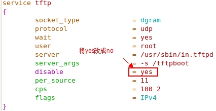 [root@localhost ~]#vim /etc/xinetd.d/tftp //配置tftp临时服务文件