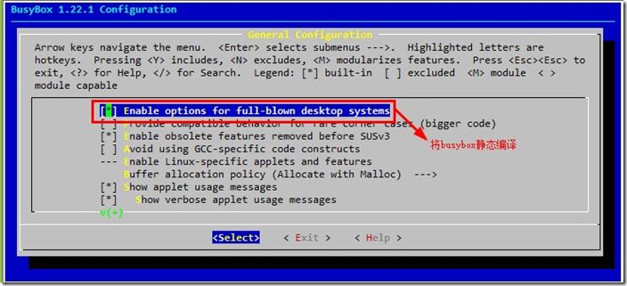 对于make menuconfig的选项说明: