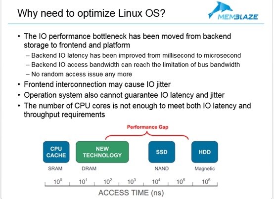 另一个问题是操作系统。在传统存储系统中,操作系统根本不是一个问题。传统存储主要考虑是如何优化IO的顺序,使得磁盘的抖动达到最低,从而提升IO性能。并且在传统存储中,主要优化的都是带宽和IOPS,对于Latency是很难做到低延迟的。在闪存存储中,操作系统的优化变得非常关键,由于闪存存储不仅优化带宽和IOPS,而且需要优化延迟。因此,Linux操作系统中的很多部分都需要进行特殊优化,从而降低延迟抖动。
