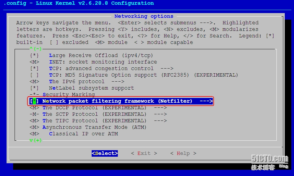 Networking support ---> Networking options ---> Network packet filtering framework (Netfilter) ---> Core Netfilter Configuration --->
