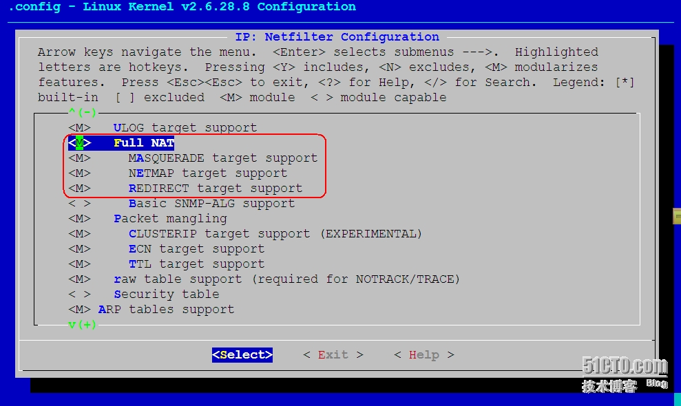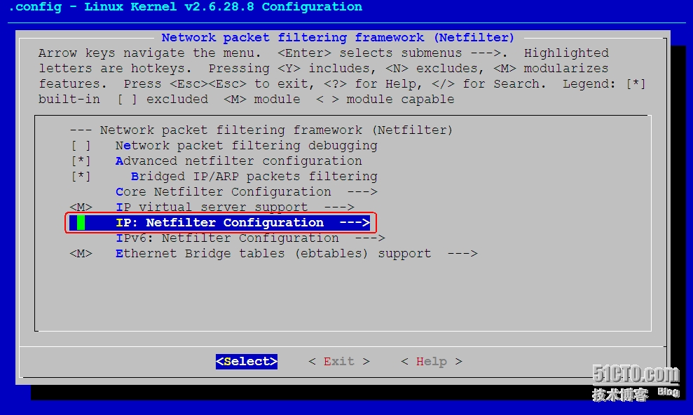 Networking support ---> Networking options ---> Network packet filtering framework (Netfilter) ---> IP: Netfilter Configuration --->
