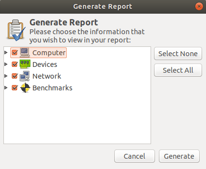 使用 hardinfo 生成系统报告 Hardinfo 也有几个命令行选项。 例如,要生成报告并在终端中显示它,请运行: