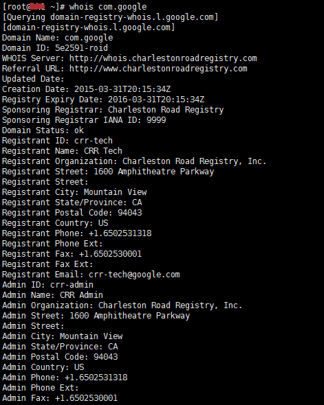 2、Linux 下 whois 命令行的配置文件 cp /etc/jwhois.conf /etc/jwhois-bk.conf wget --no-check-certificate https://raw.githubusercontent.com/jonasob/jwhois/master/example/jwhois.conf -O /etc/jwhois.conf 替换完成后,我们来查询一下试试看。比如查询 com.google,如下图所示: