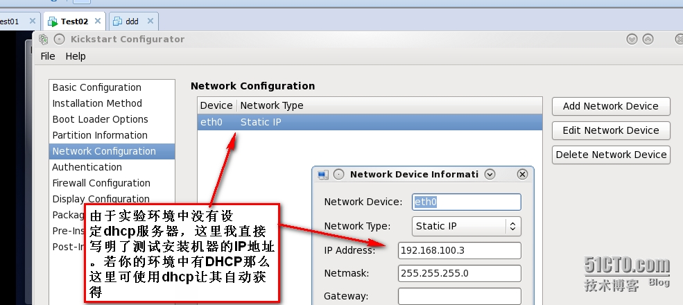 但为什么标题是“半自动化”?因为这个实验环境中没有给安装测试机提供dhcp地址自动分配,还需在ks.cfg文件中给安装测试机写明地址。这限制了大范围安装的可行性。待以后补全吧。