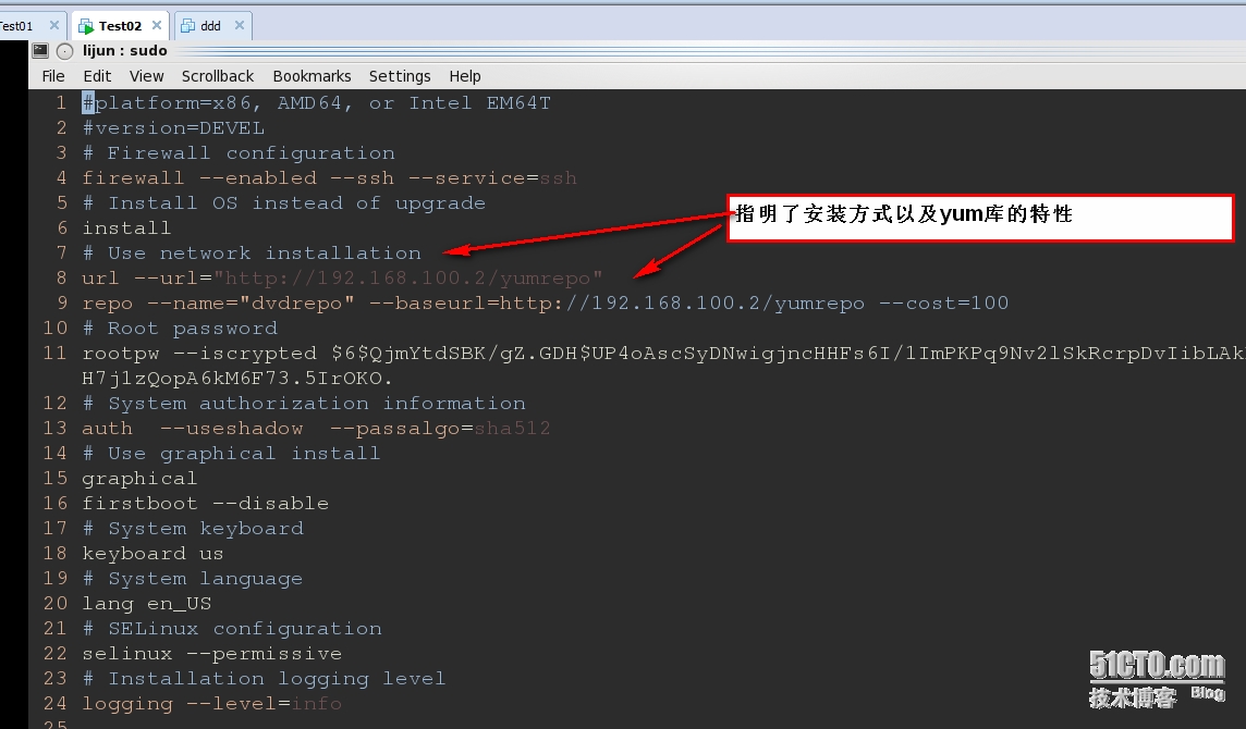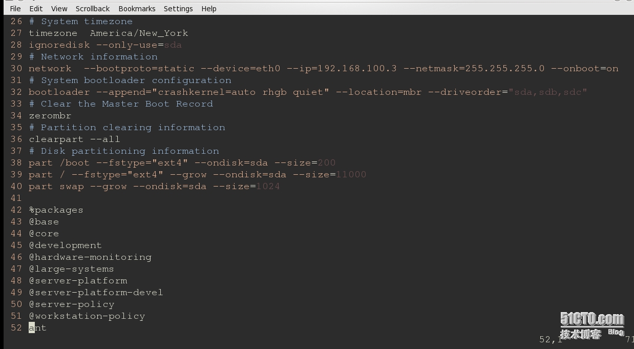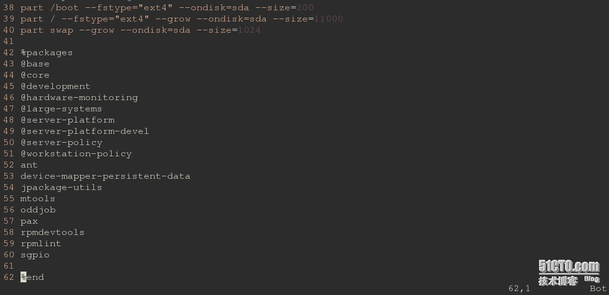 使用vim编辑器打开ks.cfg进行确认(并不推荐):