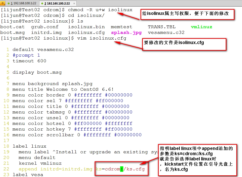 通过Centos 6.6 X86_64的系统光盘中isolinux目录结合kickstart提供的kc.cfg文件,制作一个