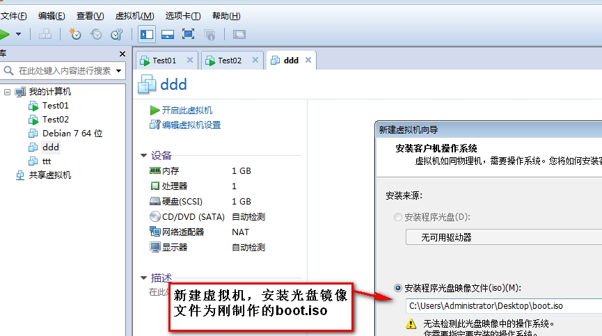 启动镜像boot.iso文件。在vmware workstation中新建一个虚拟机让其使用boot.iso镜像引导,结合