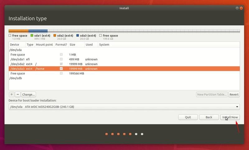 第四步:安装 Ubuntu事情到了这就非常明了了。现在选择你的分区或者以后选择也可以。