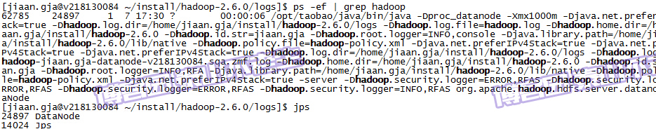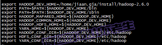 回到/home/jiaan.gja目录,配置hadoop环境变量,命令如下: