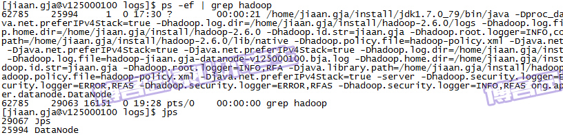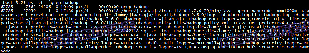 最后在Master上执行ps -ef | grep hadoop,得到如下结果:
