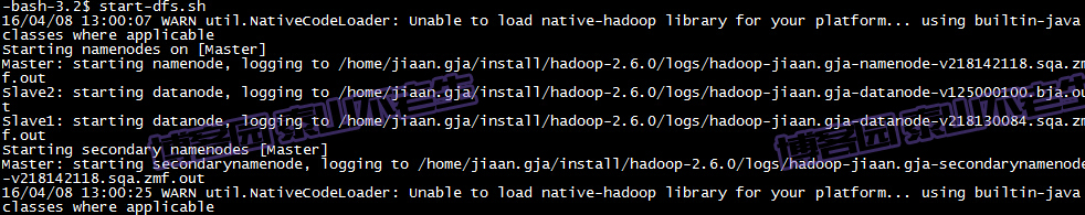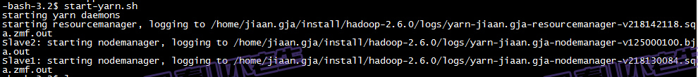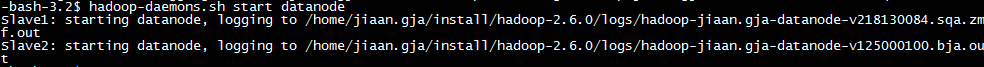 scp -r hadoop-2.6.0 jiaan.gja@Slave1:/home/jiaan.gja/install/ scp -r hadoop-2.6.0 jiaan.gja@Slave2:/home/jiaan.gja/install/