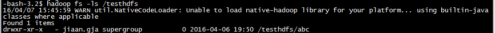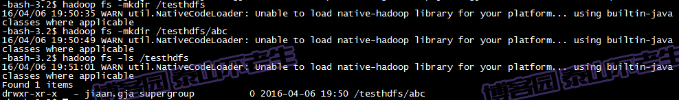 在测试Hadoop时,细心的人可能看到截图中的警告信息: