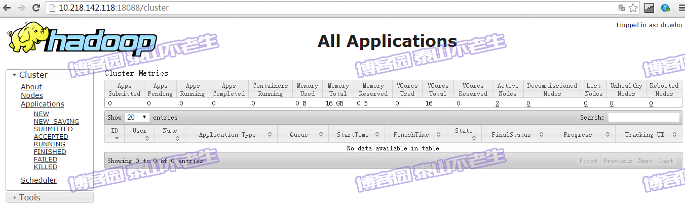 可以访问YARN的管理界面,验证YARN,如下图所示:
