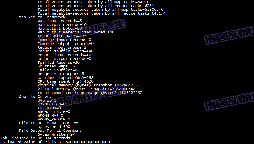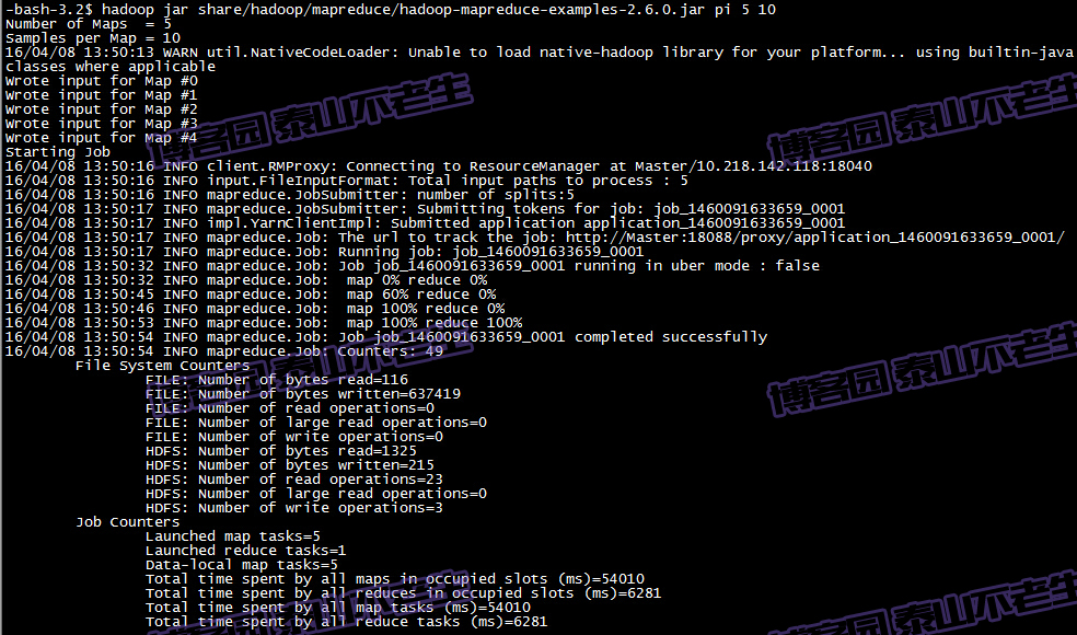 最后测试下亲手搭建的Hadoop集群是否执行正常,测试的命令如下图所示: