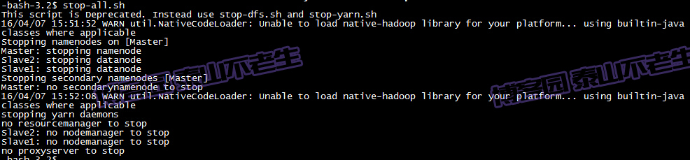 2、停止Hadoop,执行命令如下: