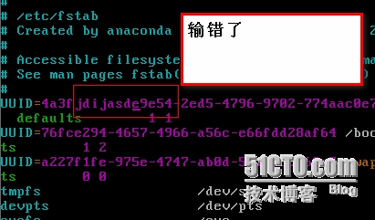 故障6: /etc/fstab (编错或误删除)
