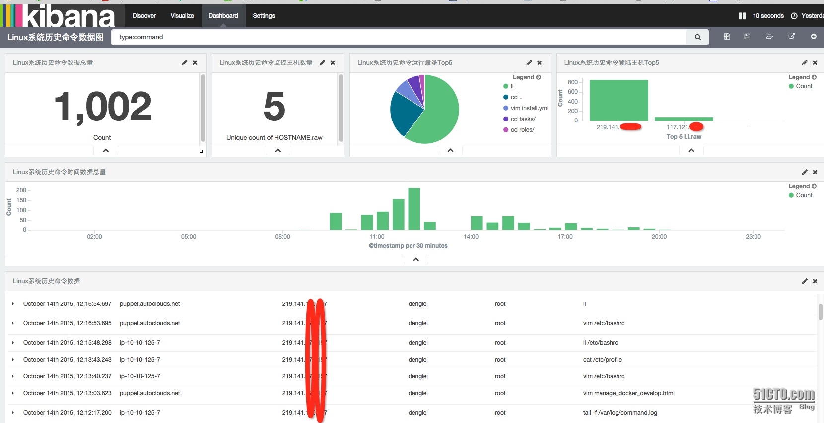 最近一方面给自己开发的平台套模板,一方面研究一些新的技术,比如今天介绍的elk,下面是介绍一下我是如何使用elk收集linux系统history与展示的。
