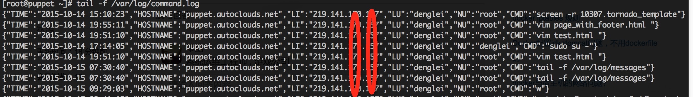 是一个json格式的,包括时间、主机名、登陆ip、登陆用户、当前用户、命令