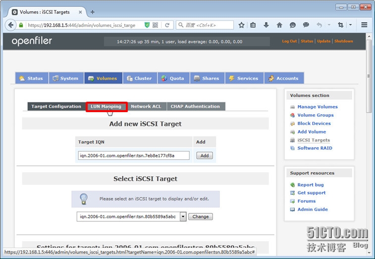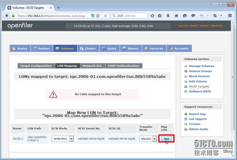 成功添加iSCSI目标后,选择LUN Mapping逻辑卷映射