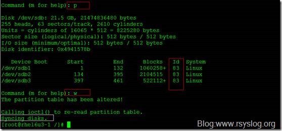 为了后期便于维护管理,记得给分区加上标示,这样即使你不在的情况下,别人看到标示了就不会轻易动这块区域了. LVM的标识是8e,设置完成后记得按w保存