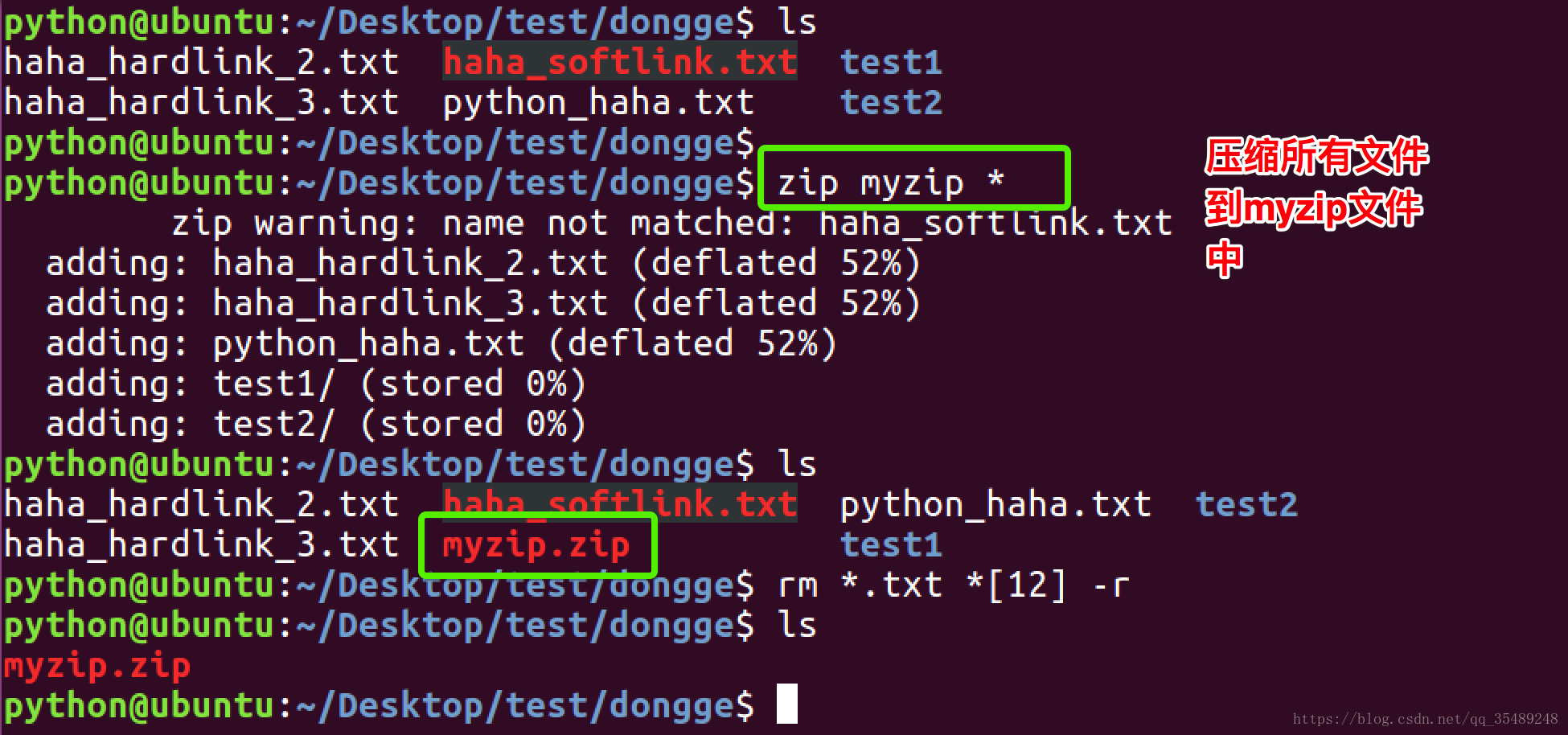 压缩文件:zip [-r] 目标文件(没有扩展名) 源文件