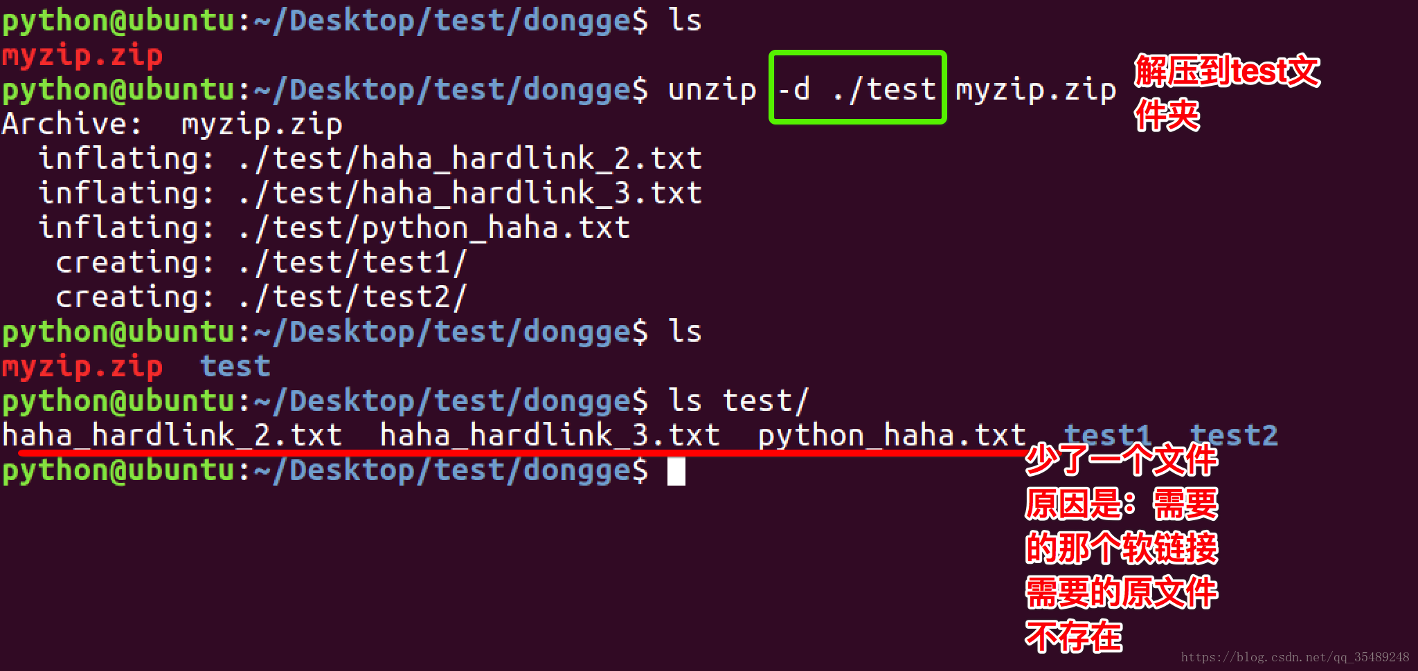 解压文件:unzip -d 解压后目录文件 压缩文件