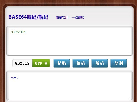 它是用base64加密的,故我用base64解码,得出邮件正文:love u