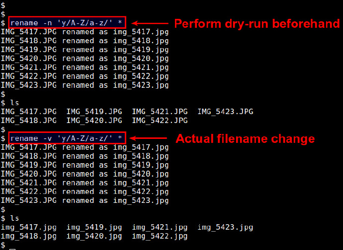 有时你想要改变文件名的大小写,你可以使用下面的命令。