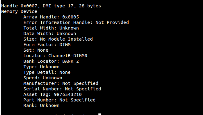 第一部分输出是概要信息,主要说板支持的最大内存是16GB,共有两个内存插槽。