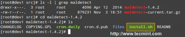# tar -xvf maldetect-current.tar.gz # ls -l | grep maldetect