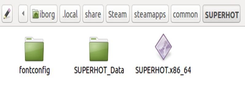 现在到了我们用某些手工的方法来共享 Windows 和 Linux 上的 Steam 游戏的时刻了! 2、手工方法首先,让我们先看看 Linux 下这些游戏文件所处的位置(用户目录在 /home 中): 这是 Linux 平台上 Steam 游戏的默认安装位置。 .local 和 .steam 目录默认情况下是不可见的,你必须将它们显现出来。我们将推荐使用一个自定义的 Steam 安装位置以便更容易地处理这些文件。这里SUPERHOT.x86_64 是 Linux 下原生的可执行文件,与 Windows 中的 .exe 文件类似。