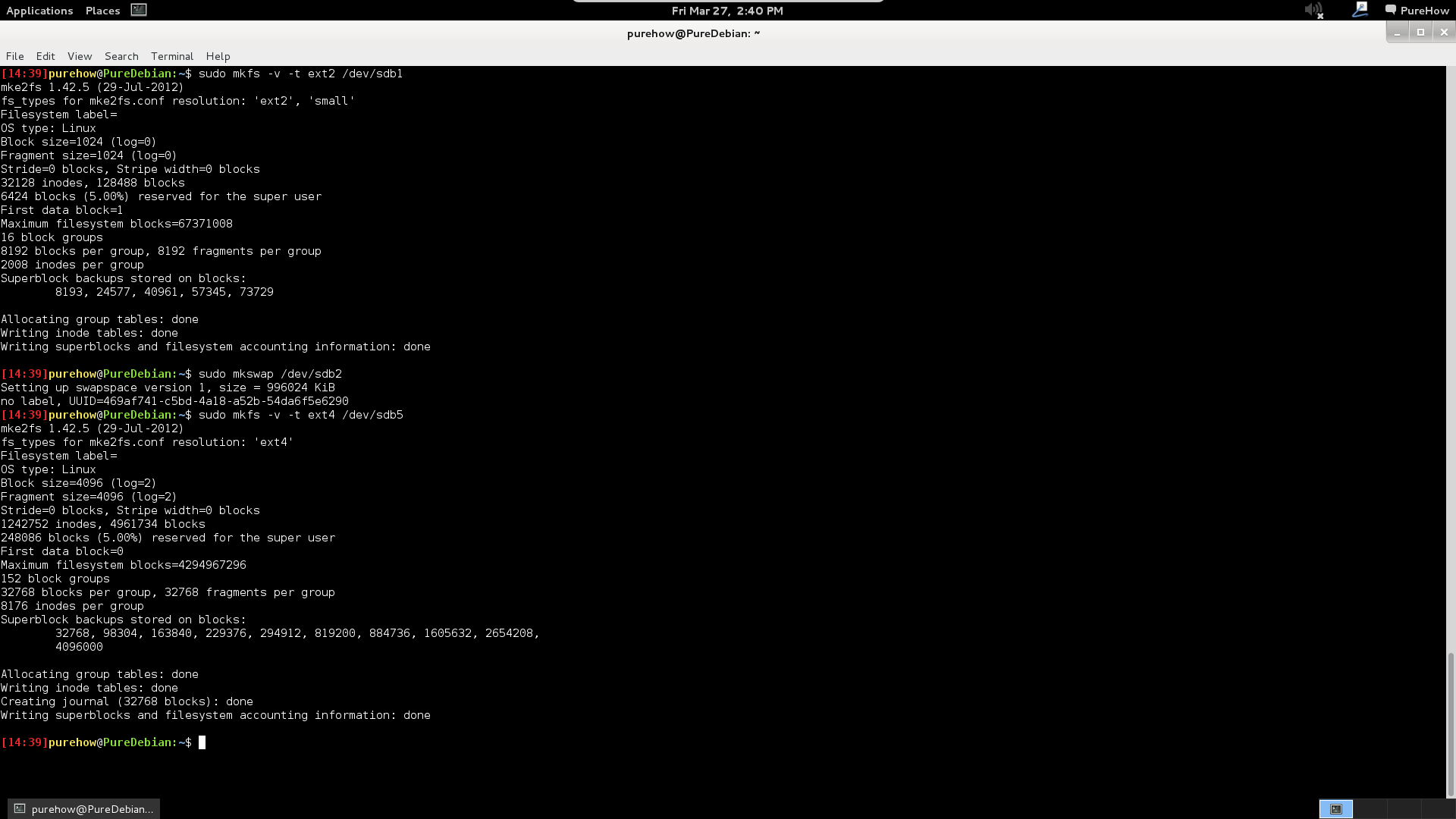 sudo mkfs -v -t ext2 /dev/sdb1 sudo mkswap /dev/sdb2 sudo mkfs -v -t ext4 /dev/sdb5