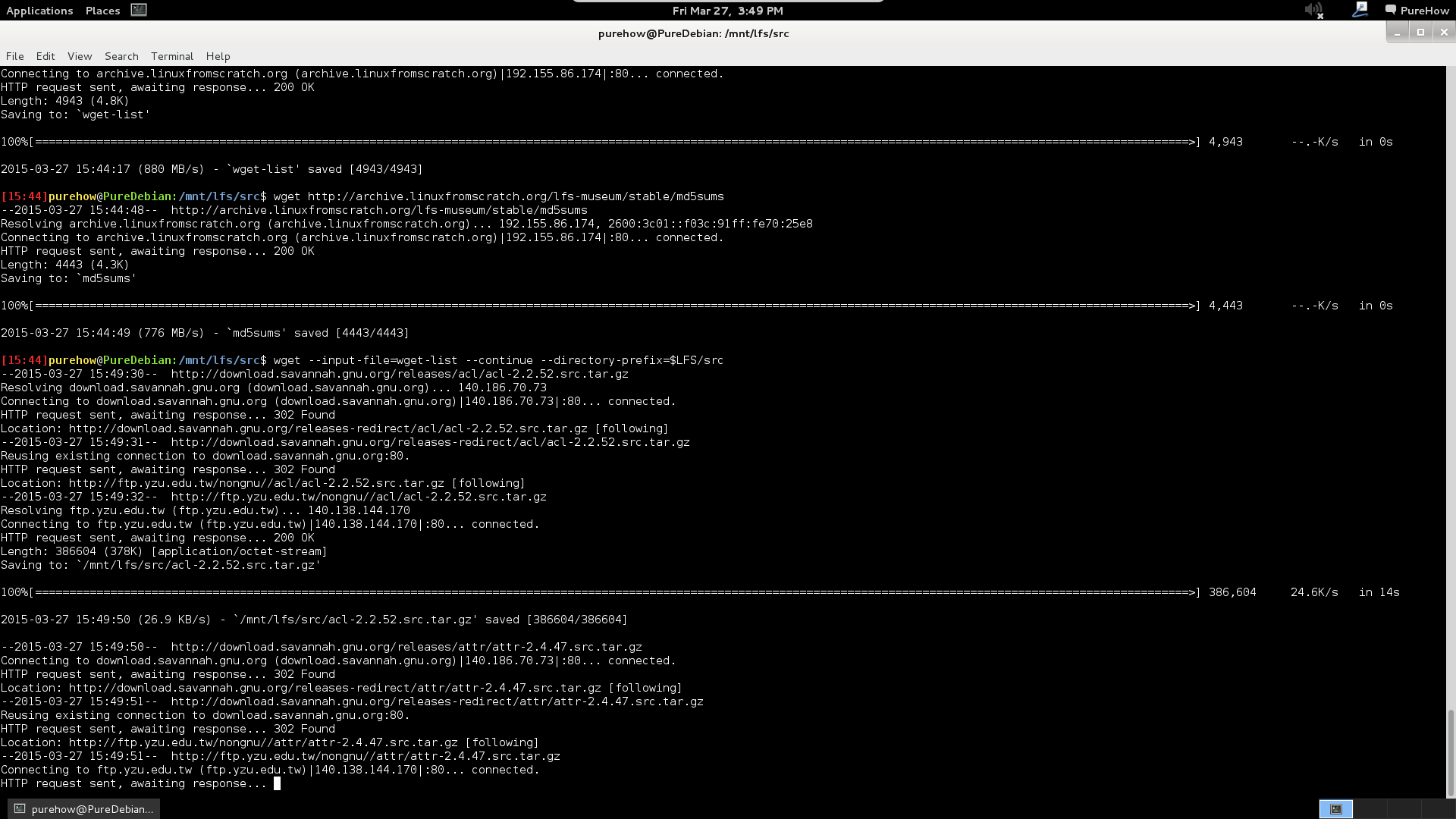 cd $LFS/src wget http://archive.linuxfromscratch.org/lfs-museum/stable/wget-list wget http://archive.linuxfromscratch.org/lfs-museum/stable/md5sums