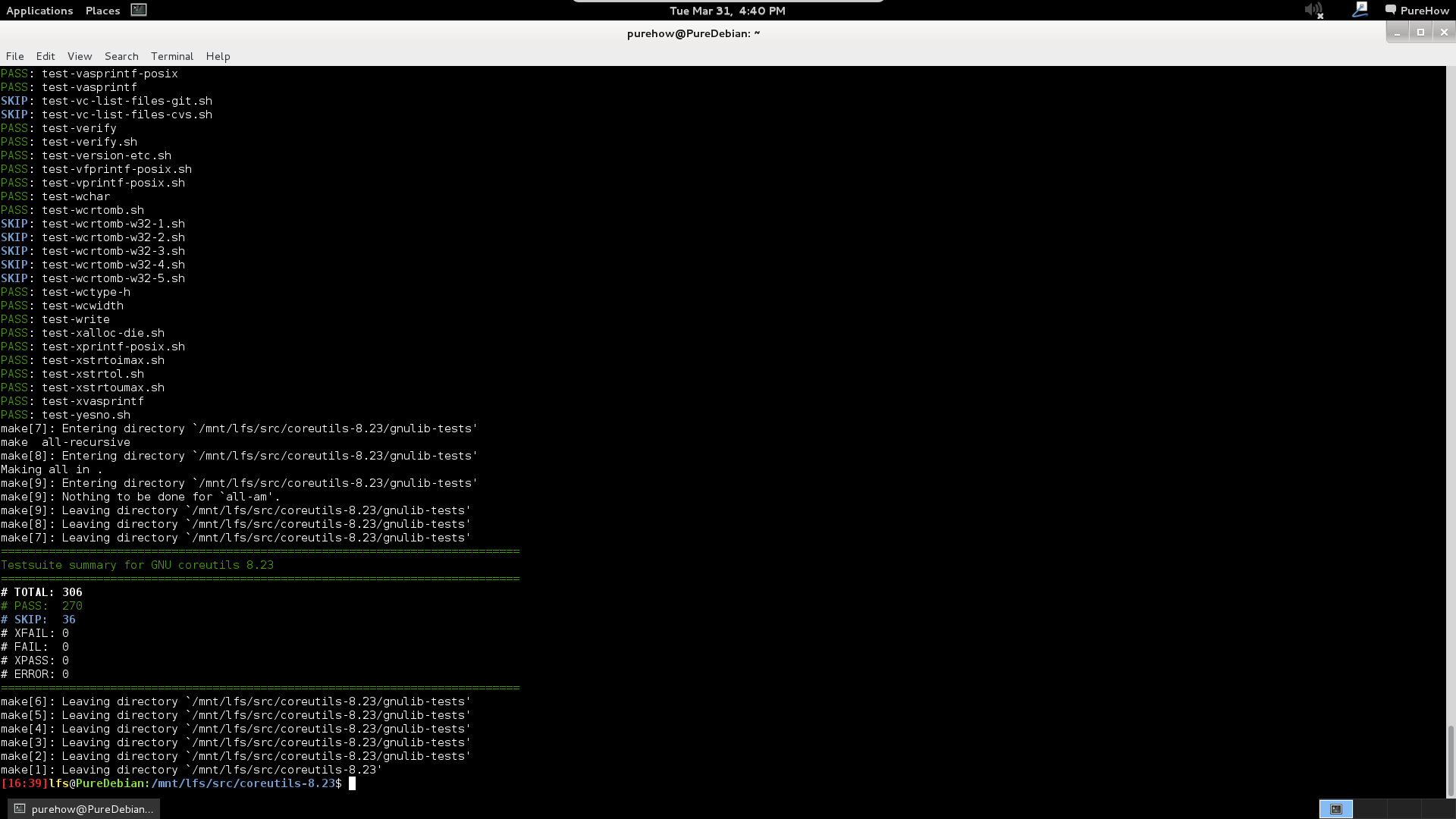 cd $LFS/src tar -xf m4-1.4.17.tar.xz cd m4-1.4.17 ./configure –prefix=/tools make make check