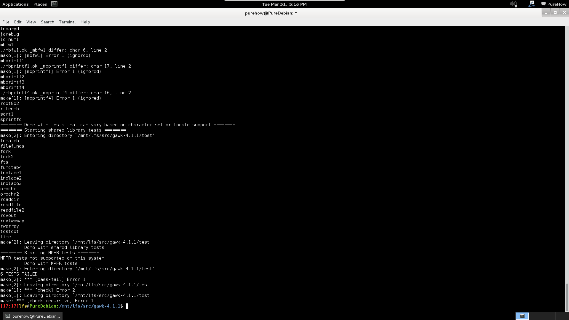 cd $LFS/src tar -xf gawk-4.1.1.tar.xz cd gawk-4.1.1 ./configure –prefix=/tools make make check