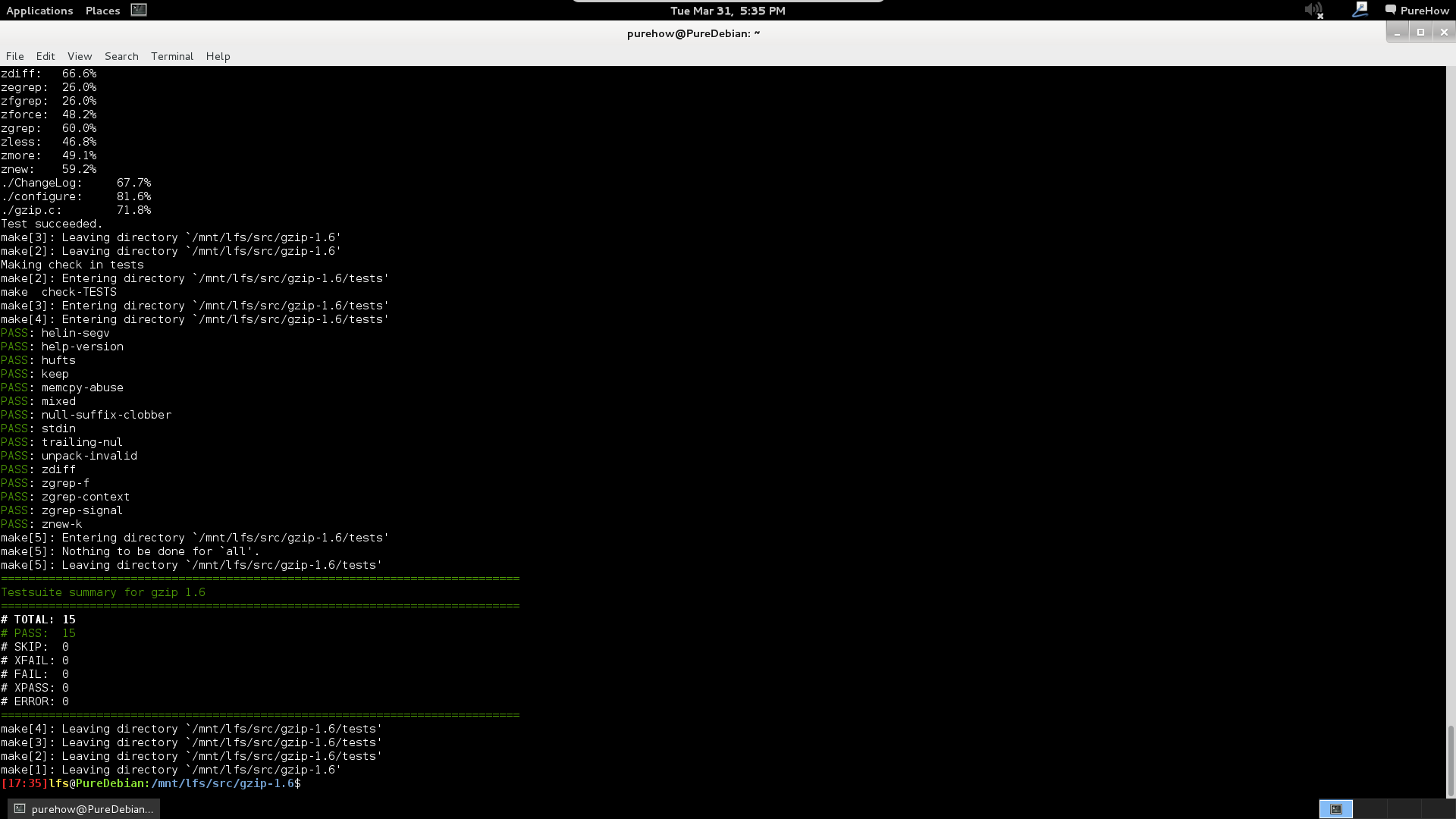cd $LFS/src tar -xf gzip-1.6.tar.xz cd gzip-1.6 ./configure –prefix=/tools make make check