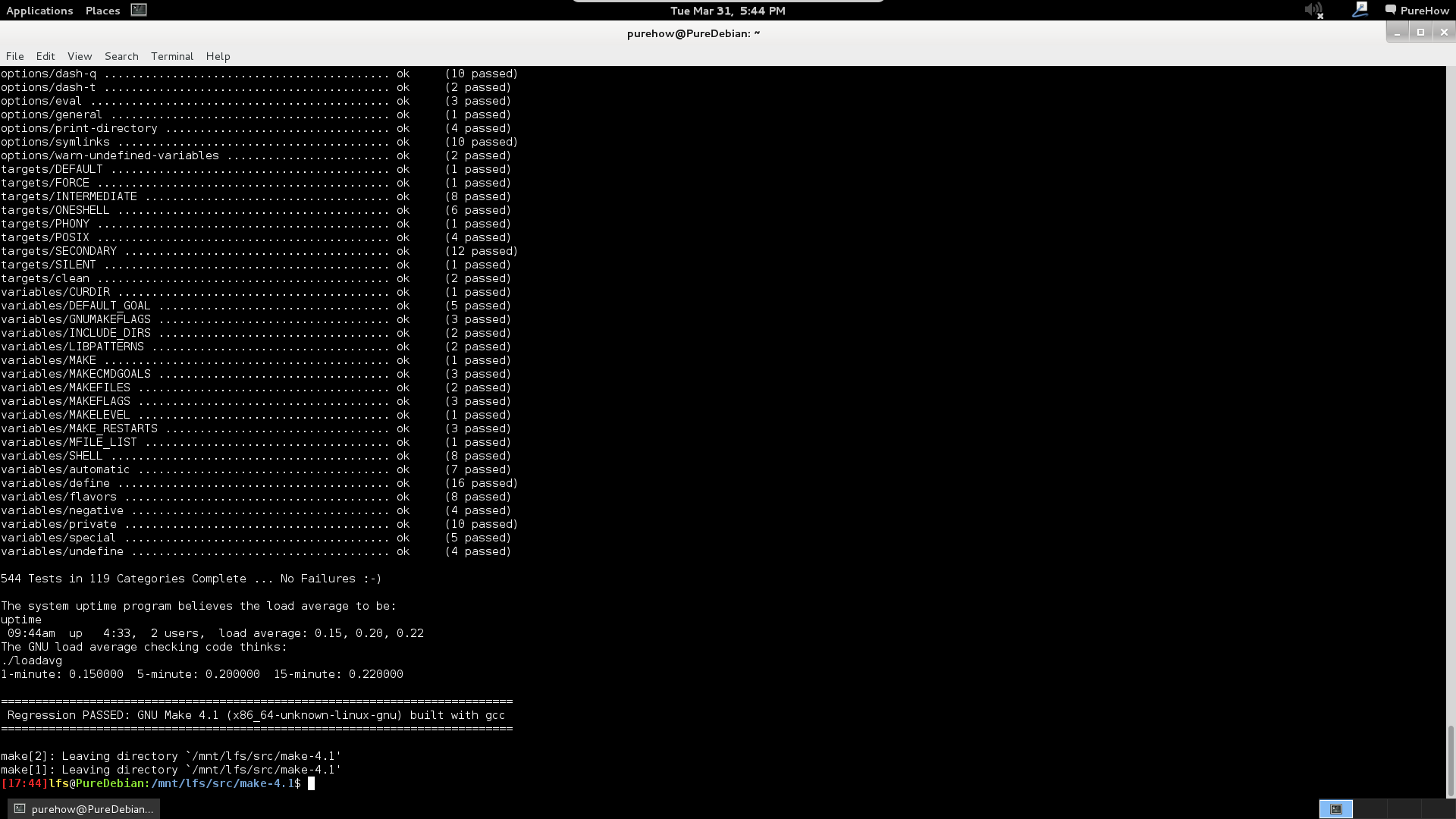 cd $LFS/src tar jxvf make-4.1.tar.bz2 ./configure –prefix=/tools –without-guile make make check