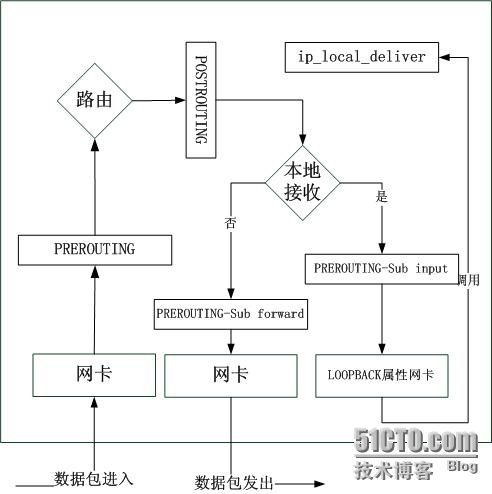 个人觉得,Linux网络处理还有一个不对称的地方,那就是路由后的转发函数,我们知道Linux的网络处理在路由之后有个分叉,根据目的地的不同,处理逻辑就此分道扬镳,如果路由结果带有LOCAL标志,那么就调用ip_local_deliver,反之调用ip_forward(具体参看ip_route_input_slow中对rth->u.dst.input的赋值)。如此一来,LOCAL数据就径直发往本地了,这其实也是RFC的建议实现,它简要的描述了路由算法:先看目标地址是不是本地,如果是就本地接收...然而我认为(虽然总是带有一些不为人知的偏见),完全没有必要分道扬镳,通过一个函数发送会更加好一点,比如发往本地的数据包同样发往一块网卡处理,只是该块网卡是一块LOOPBACK网卡,这样整个IP接收例程就可以统一描述了。类似的,对于本地数据发送也可以统一由一个虚拟的LOOPBACK网卡发送,而不是直接发送给路由模块。整体如下图所示: