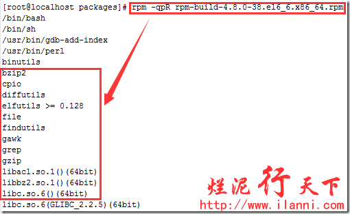 查看rpm-build的rpm包的依赖关系,如下: rpm -qpR rpm-build-4.8.0-38.el6_6.x86_64.rpm