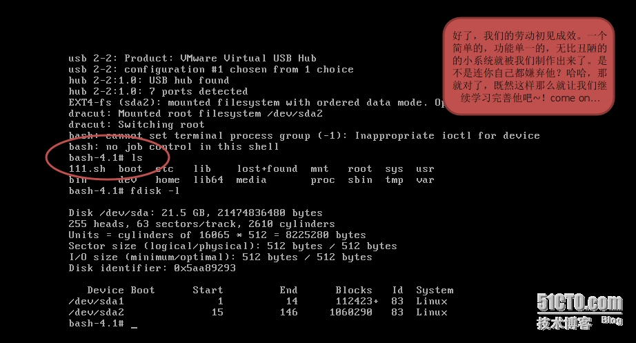 ok,这样一个简单的经过剪裁的小linux已经站在了我们的面前。当然,他有待提升加强的功能还有太多。让我们在随后的日子继续学习来补充加强它吧~!!