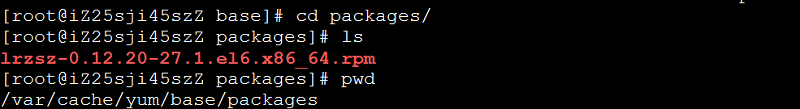 修改保存之后,这里以lrzsz为例来下载测试: 1、执行命令yum install lrzsz -y 2、查看lrzsz的安装包已经存放在/var/cache/yum/base/packages目录下了