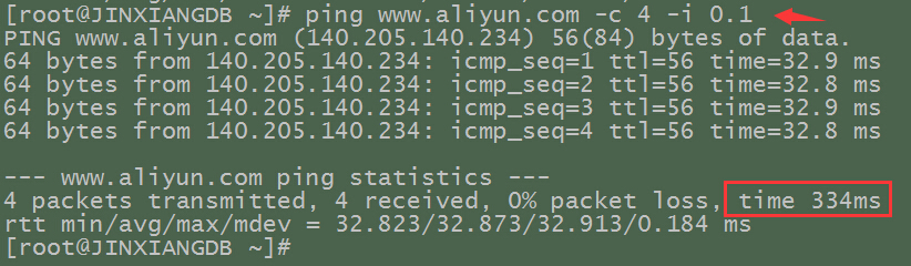 这说明通过-i参数可以控制间隔时间,通过-i 0.1 参数测试后,可以看到总时间明显变小了。